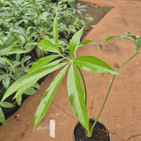 Thaumatophyllum spruceanum, also known as Philodendron goeldii or the Finger Leaf Philodendron, is a tropical houseplant native to South America, prized for its unique, star-shaped, spirally arranged leaves that give it a palm-like appearance. It is an easy-to-care-for, self-heading plant that grows upright from a central stem and requires bright, indirect light, moderate watering, and well-draining soil to prevent root rot.
