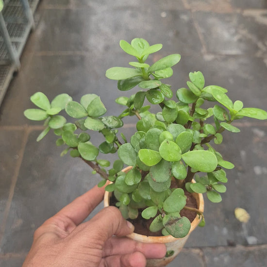 The Jade plant is a popular, low-maintenance succulent known for its thick, glossy green leaves and its association with good luck and prosperity in Feng Shui and Vastu. Native to Southern Africa, this plant thrives in bright, indirect sunlight and requires infrequent watering, allowing the soil to dry out completely between waterings. It is an excellent choice for both homes and offices, symbolizing wealth and positive energy.