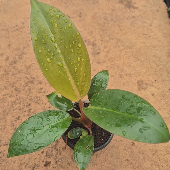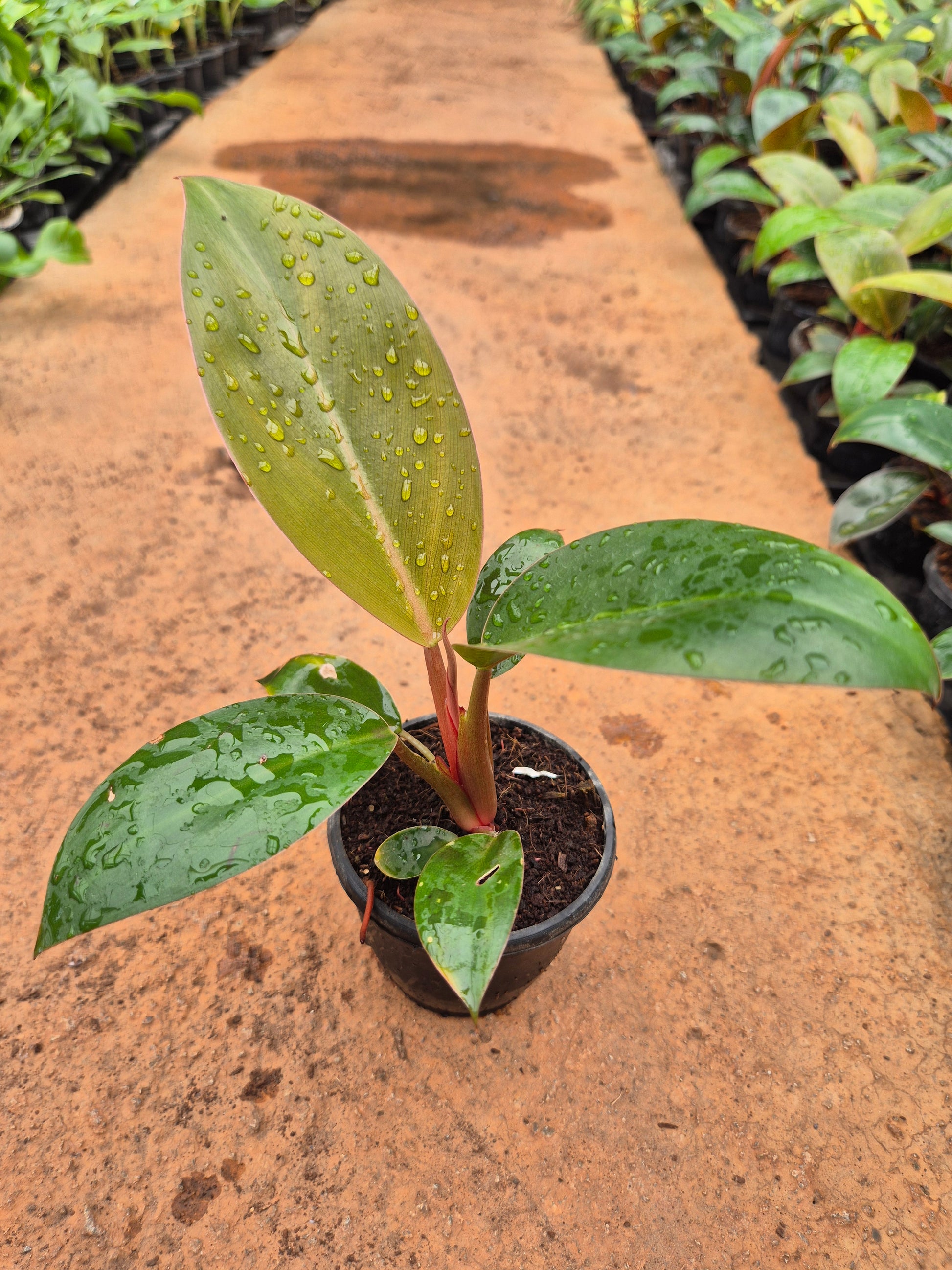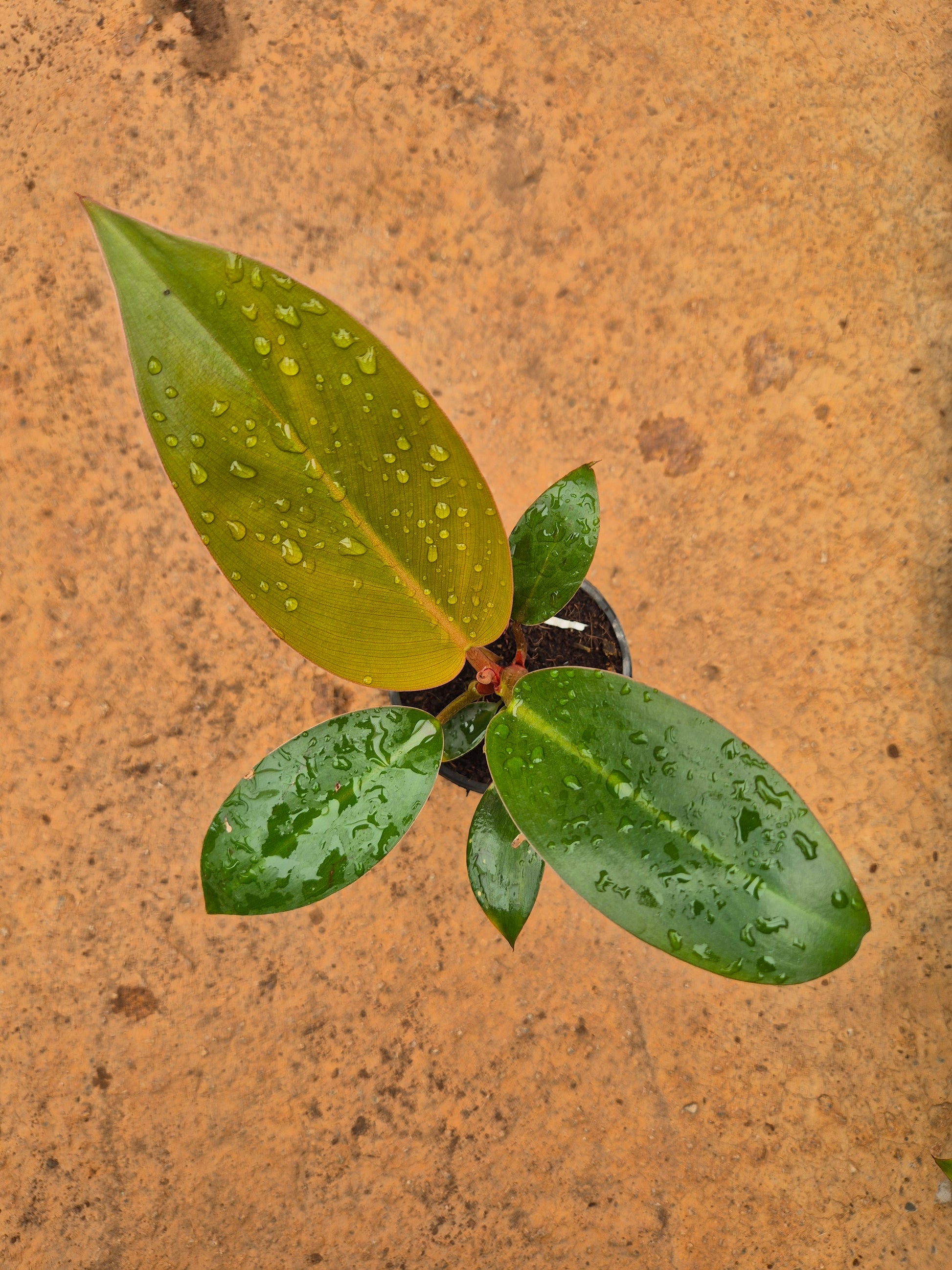 A popular houseplant known for its large, glossy leaves that emerge deep red and mature to a dark green with red undertones. The plant is prized for its upright, shrub-like growth and is a low-maintenance option for adding a bold, tropical look to indoor spaces.